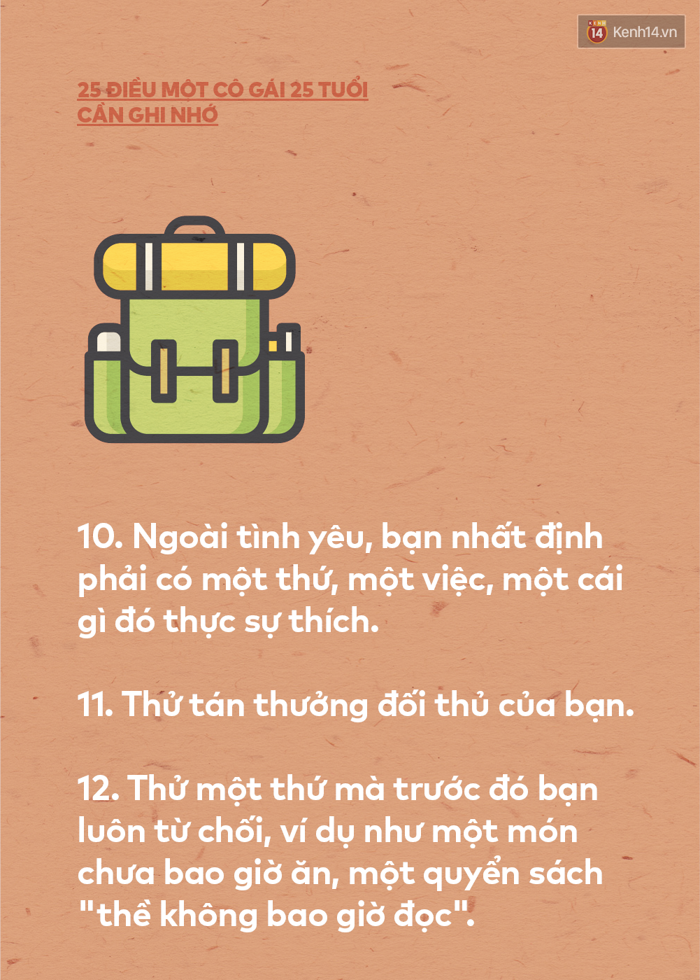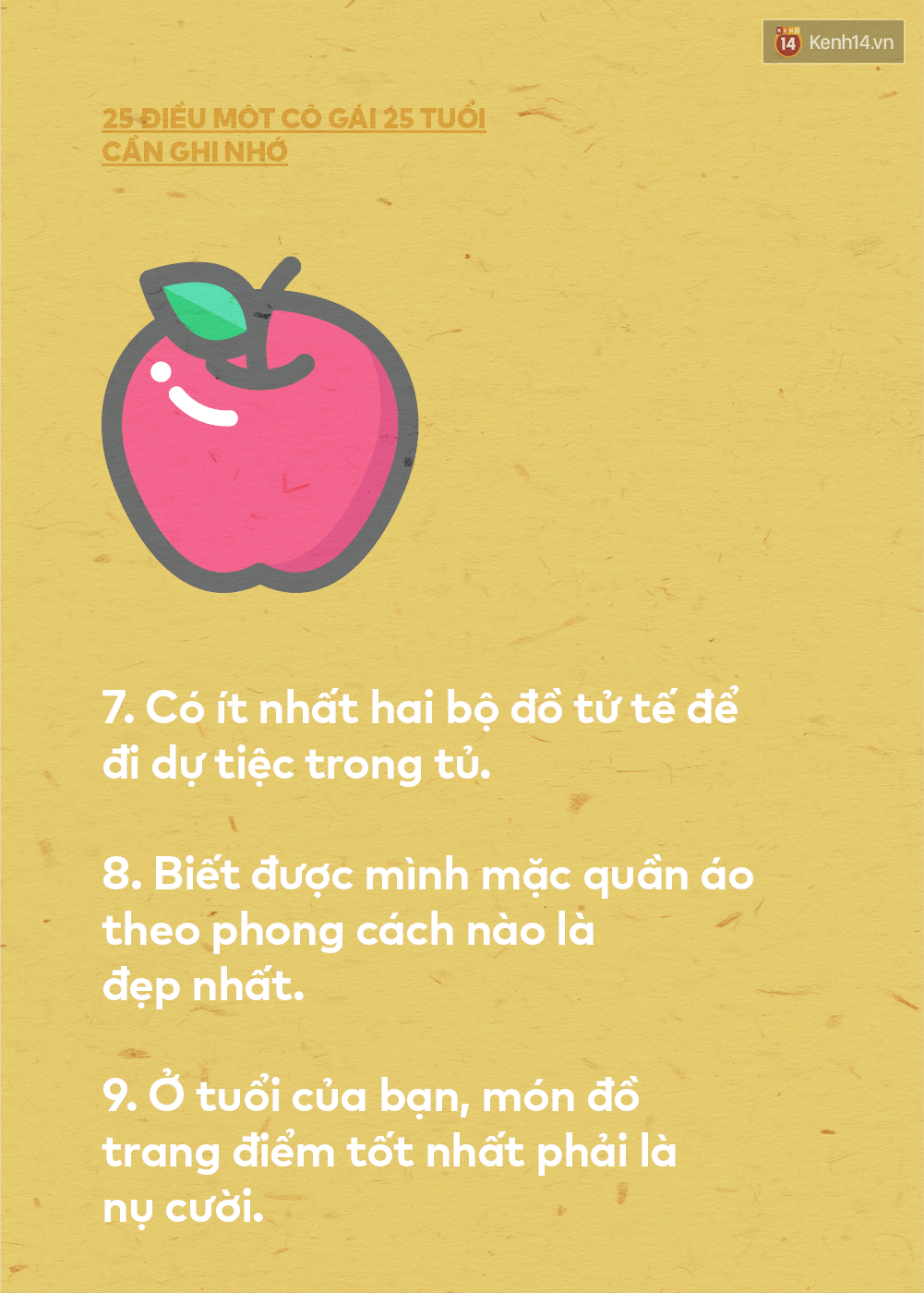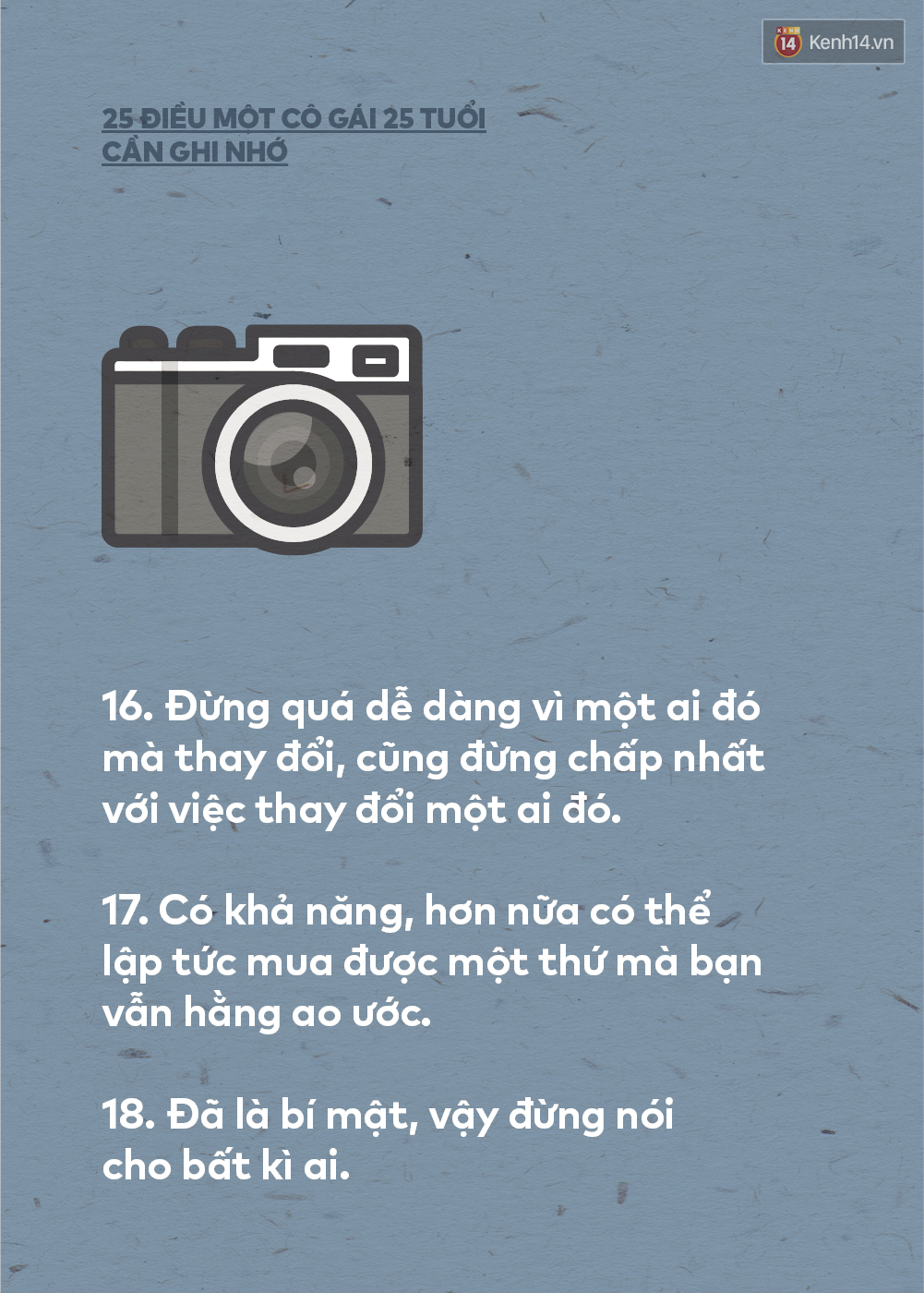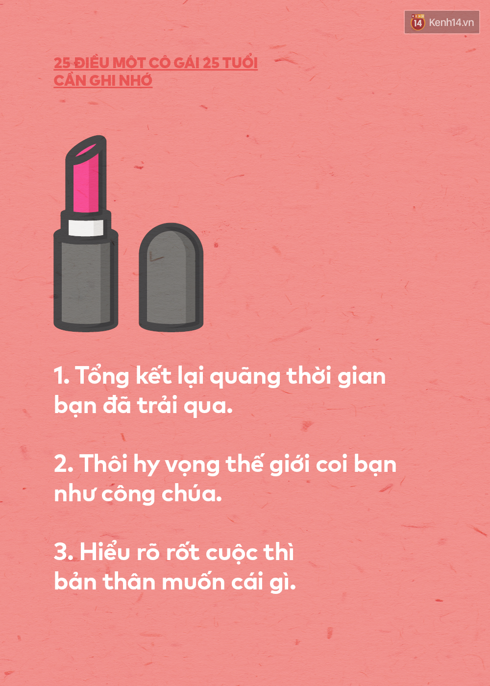 [SIZE=4]Này những cô gái đang tuổi 25, các bạn nhất định phải ghi nhớ 25 điều này để có thể sống thật hiên ngang, trưởng thành.[/SIZE]