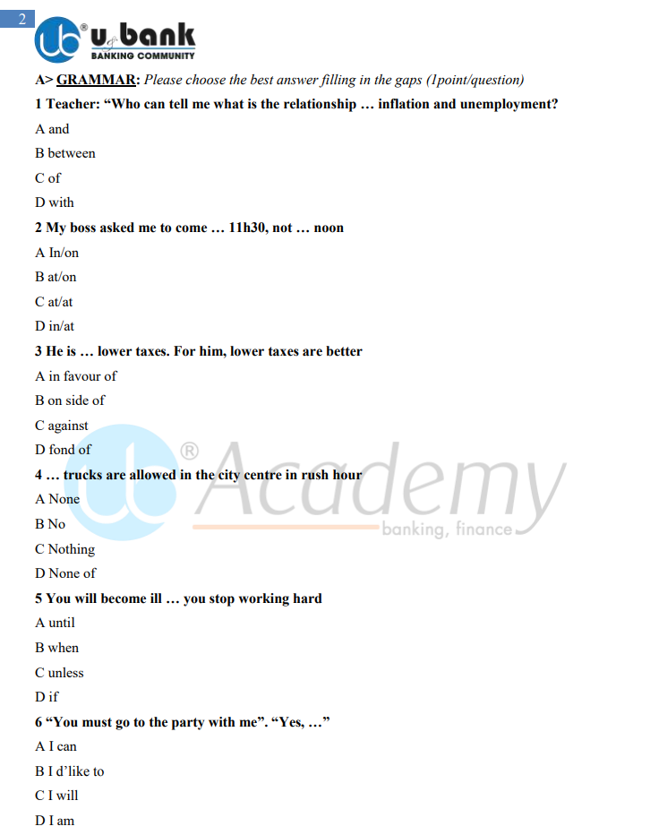 Đặc biệt, các Nội dung về Tiếng Anh đều có sẵn trong Nội dung Ôn tập. Theo đó, UB Academy sẽ hướng dẫn Học, làm & Chữa đề thi Tiếng Anh trực tiếp của BIDV.