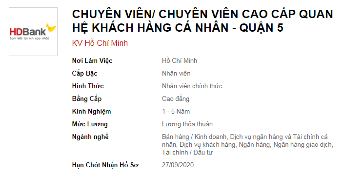 [li]Chính trực, đáng tin cậy.[/li][li]Tự tin và sáng tạo.[/li][li]Chịu áp lực công việc.[/li][li]Thích làm việc trong môi trường HDBank.[/li][/ul]