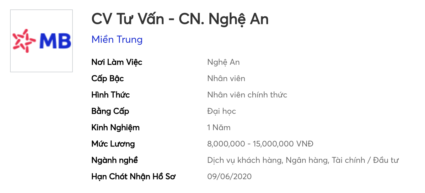 [li]Tốt nghiệp Đại học trở lên chuyên ngành Tài chính, Ngân hàng, Kinh tế….[/li][li]Hiểu biết chuyên sâu các kiến thức về sản phẩm, dịch vụ của Ngân hàng dành cho Khách hàng cá nhân[/li][li]Ưu tiên ứng viên có kinh nghiệm tối thiểu 06 tháng ở vị trí CVQHKH/Giao dịch viên/Chăm sóc khách hàng[/li][li]Kỹ năng bán hàng, kỹ năng giao tiếp tốt[/li][li]Ngoại hình khá (Nam cao 1m65 trở lên, nữ cao 1m60 trở lên)[/li][li]Thành thạo tin học văn phòng cơ bản (word, excel, outlook…)[/li][li]Ngoại ngữ: TOEIC 450 trở lên hoặc chứng chỉ tương đương[/li][/ul]