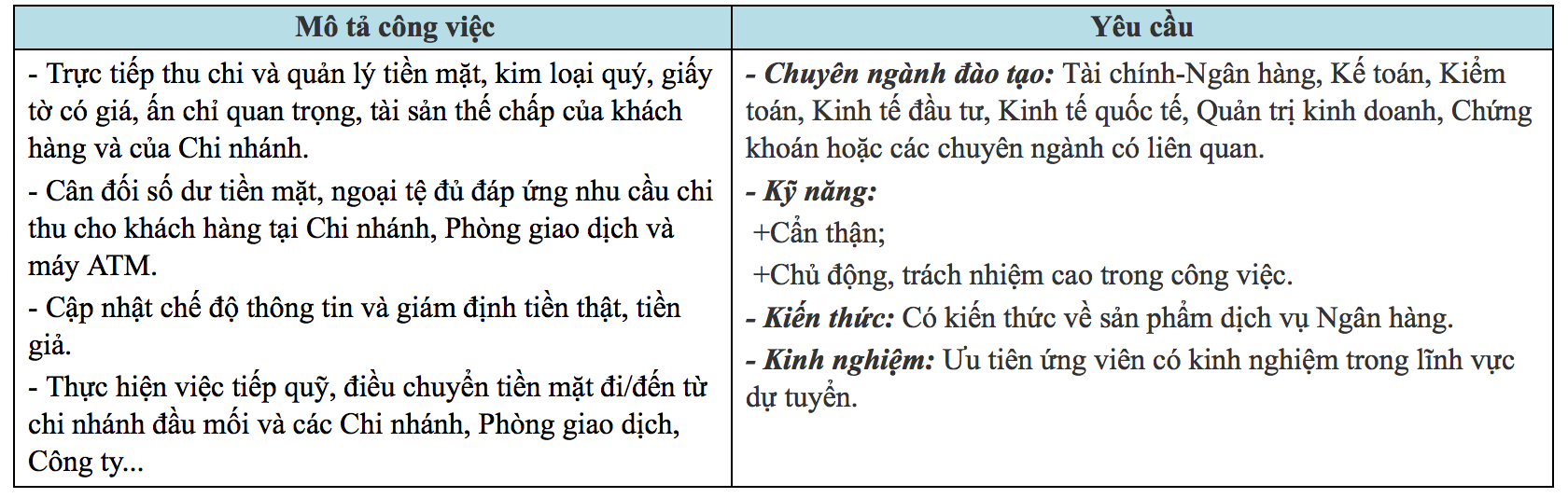 [TD]Nhân viên Ngân quỹ - Chi nhánh[/TD]